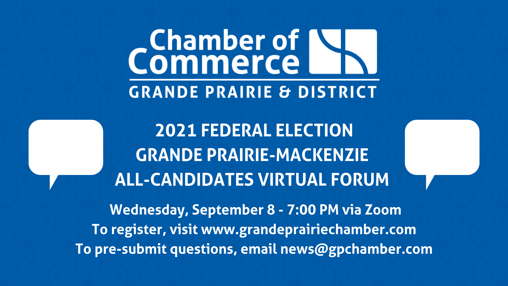 The Grande Prairie & District Chamber of Commerce is hosting a 2021 Federal Election Grande Prairie-Mackenzie All-Candidates Virtual Forum on Wednesday, September 8.